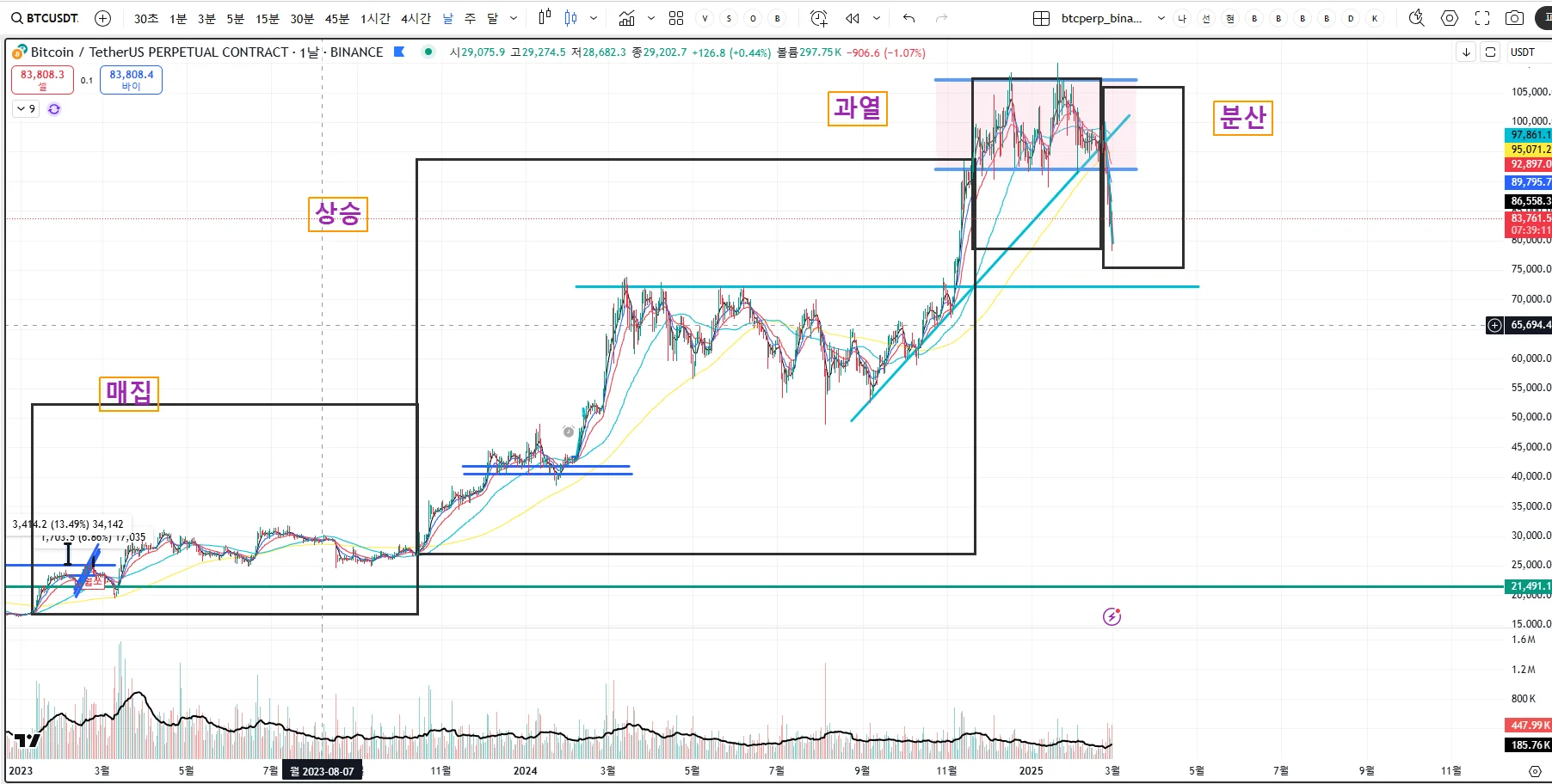현재까지는 반전캔들이 나와 지지가 된 상황인 거 같습니다. 아직은 과열 중에 있다고 생각합니다.
