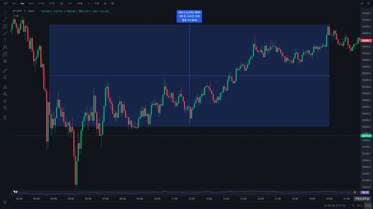 이후 횡보장 - 상승장을 거쳐 최대 상승 지점인 고점에서 수익 실현을 완료했습니다.