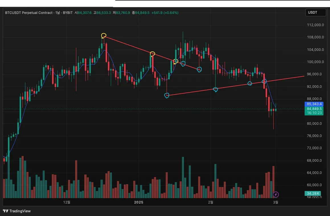 추세선 1 하락추세 끝나고 지지로 바뀜