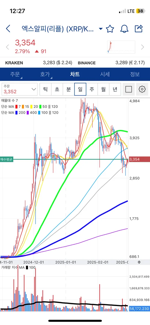 매물대의 지지를 받을거라 생각하고 진입하였고 직전 저점까지 내려가면 손절할 예정입니다