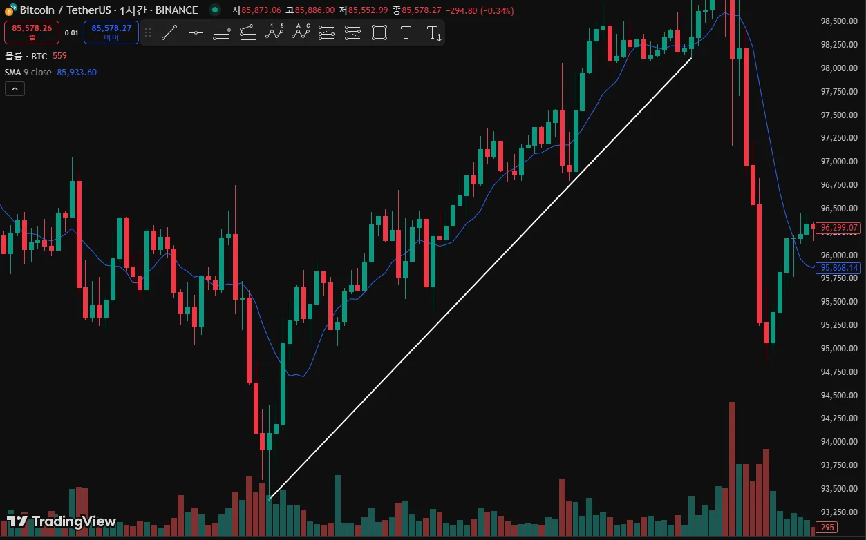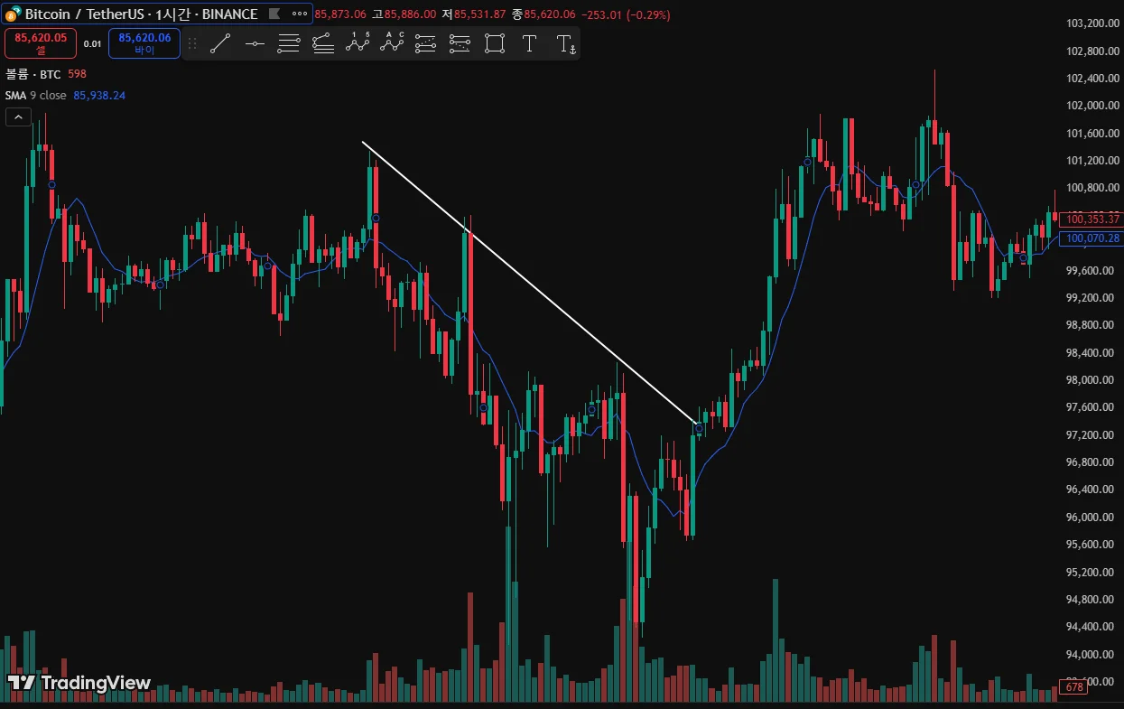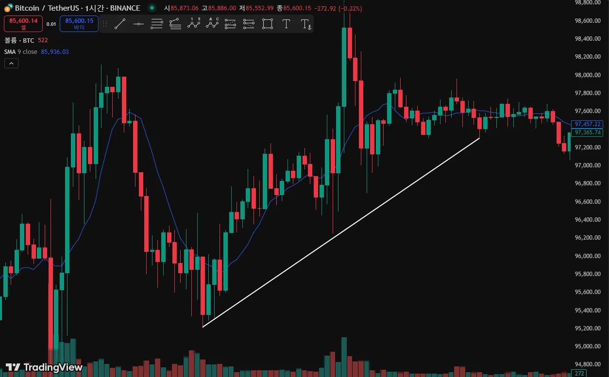 상승 추세선(지지)과 하락 추세선(저항) 작도해보았습니다!