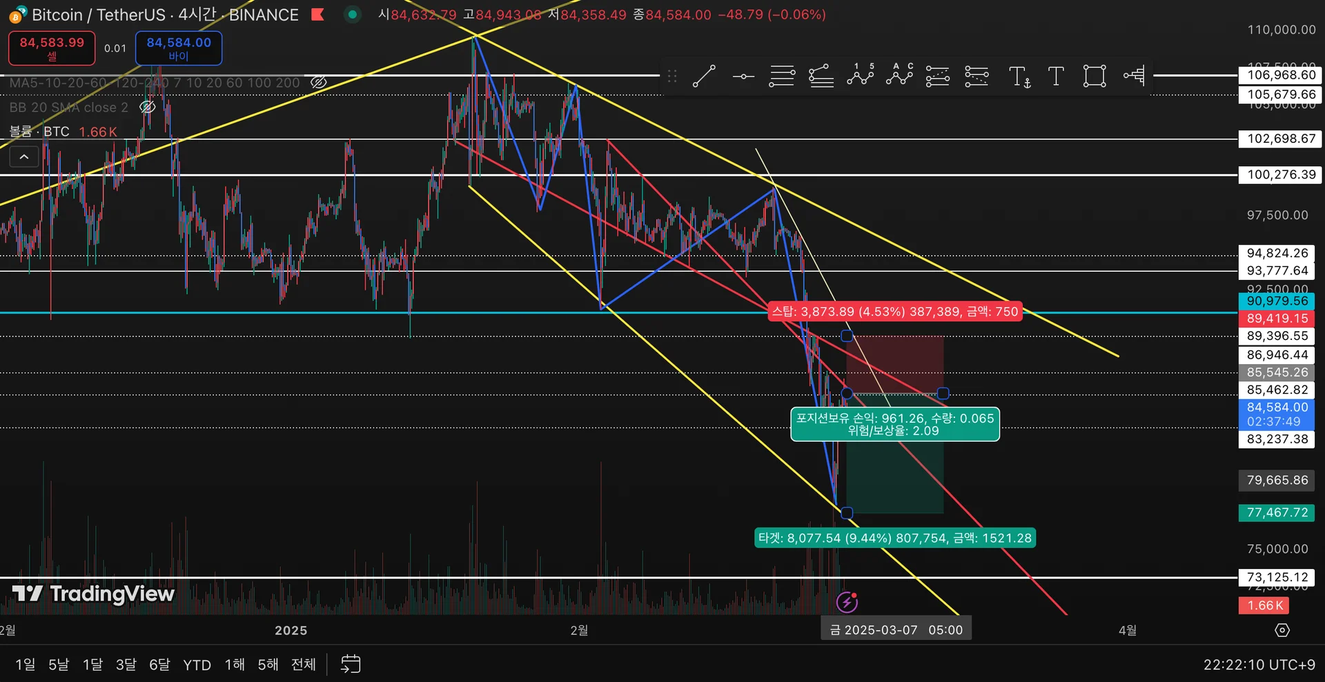 추세특강을 듣고 작도를 하여 바이낸스에서 숏포지션 매매를 하였습니다