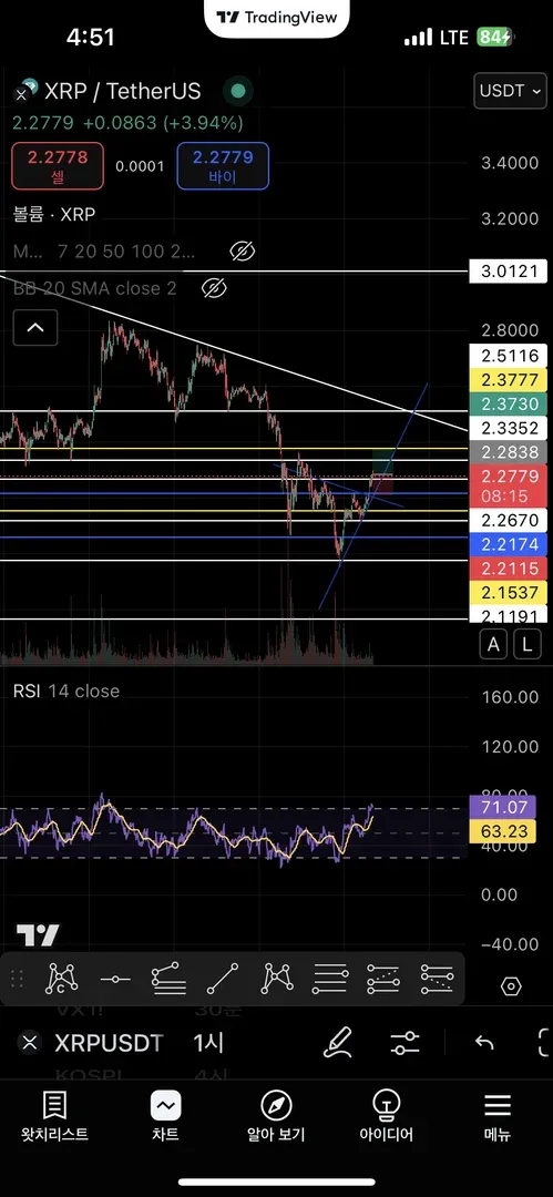 지지선,저항선, 추세선 등을 활용해 보았습니다.