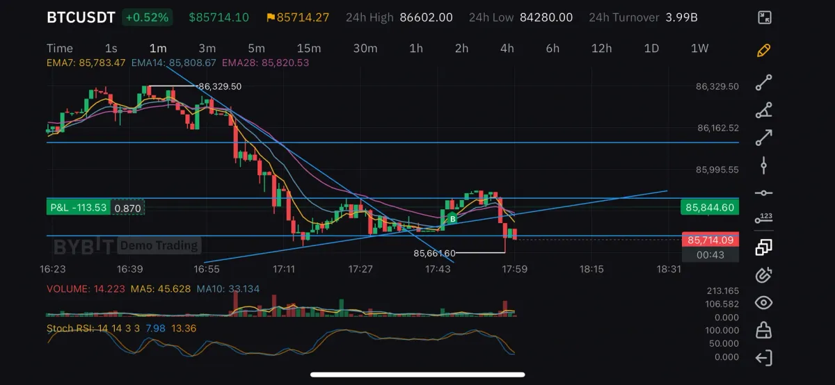 아직은 이 데모트레이딩 앱이랑 안 친해서 더 사용해보고 싶은 도구들이 많습니다 더 노력해서 더 많은 도구를 사용해서 데모투자로 연습후 실전투자 해보고싶습니다.. 제가 군인이라 훈련과 제설 로 인해 늦게 계속 올려드려 죄송합니다.