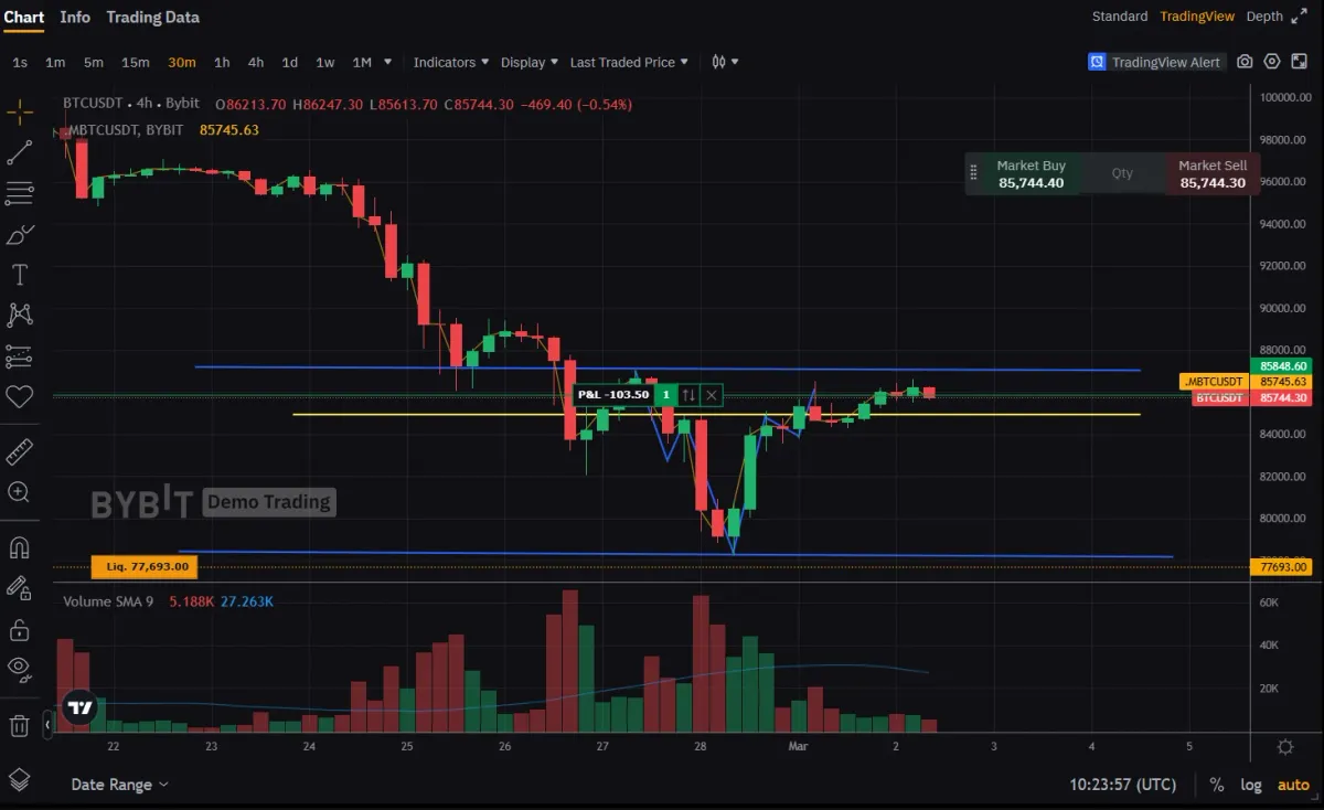 현재 현물에서 역헤드앤숄더 패턴이 발생한 것 같아 넥라인 돌파 후 롱 포지션 진입했습니다.