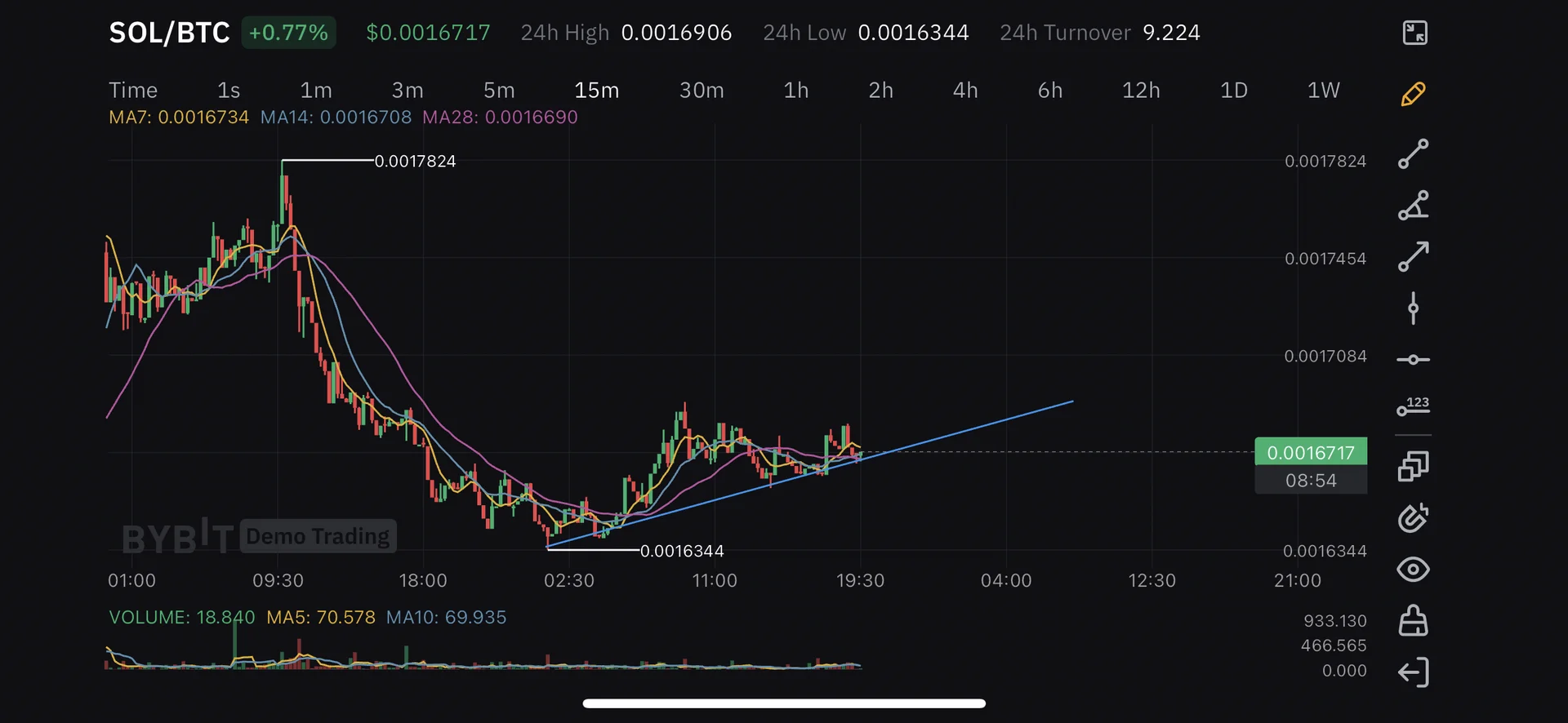 Sol/btc 현물 매수 모의거래했습니다.