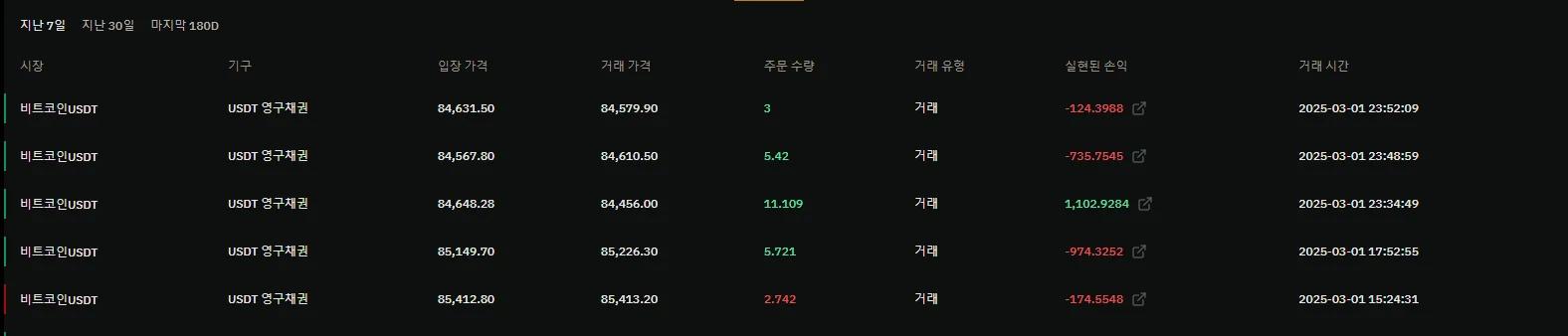 처음 2번의 손실은 바이비트 사용방법의 미숙으로 생긴 손실이었다면 나머지 3번의 결과는 다 지지선을 깨고 하락을 예측하고 숏으로 들어갔습니다. 처음에는 수익을 냈었으나 나머지 2번의 결과는 심리적인 반응으로 손실을 내고 말았습니다. 배운 것을 더 활용하고 심리적인 요인을 다스려 더 발전하도록 하겠습니다.
