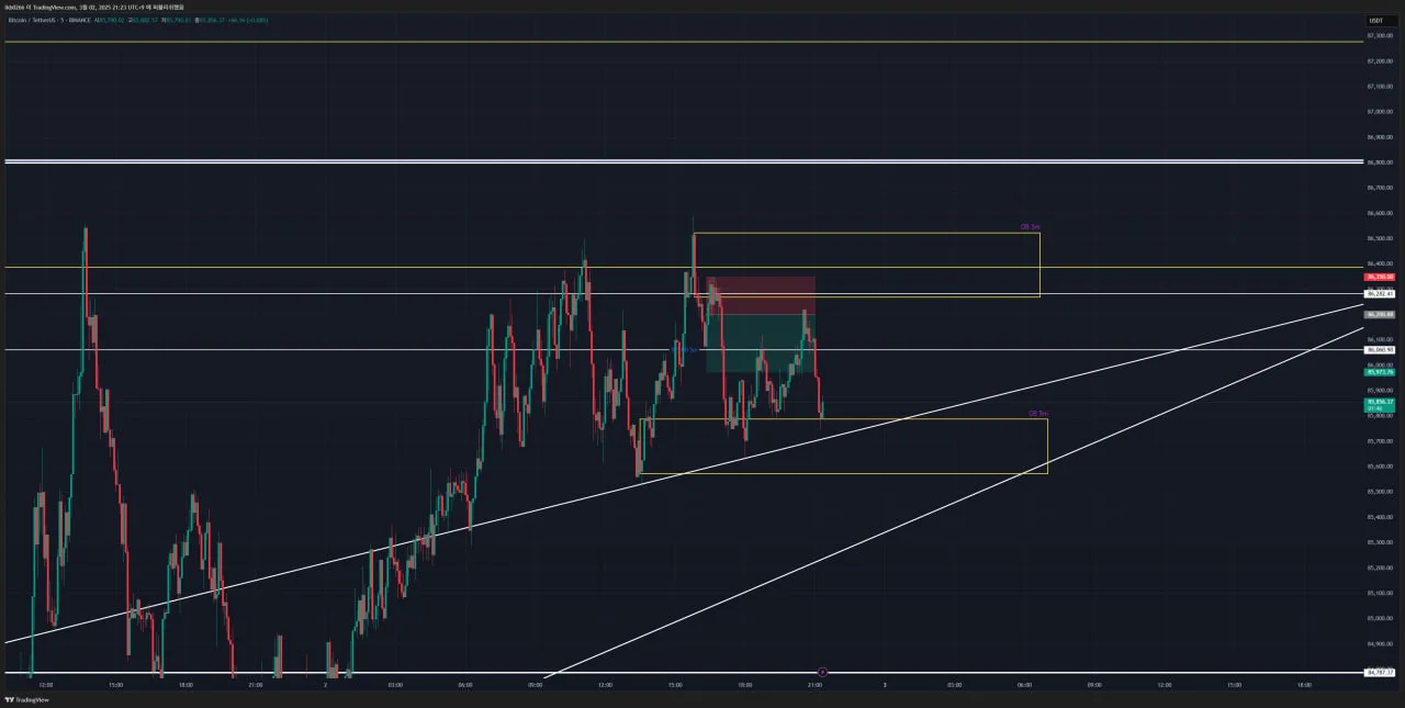 SL : 85,531.86(5분봉 OB 전 저점) / 1차 익절 후 본절SL 예정