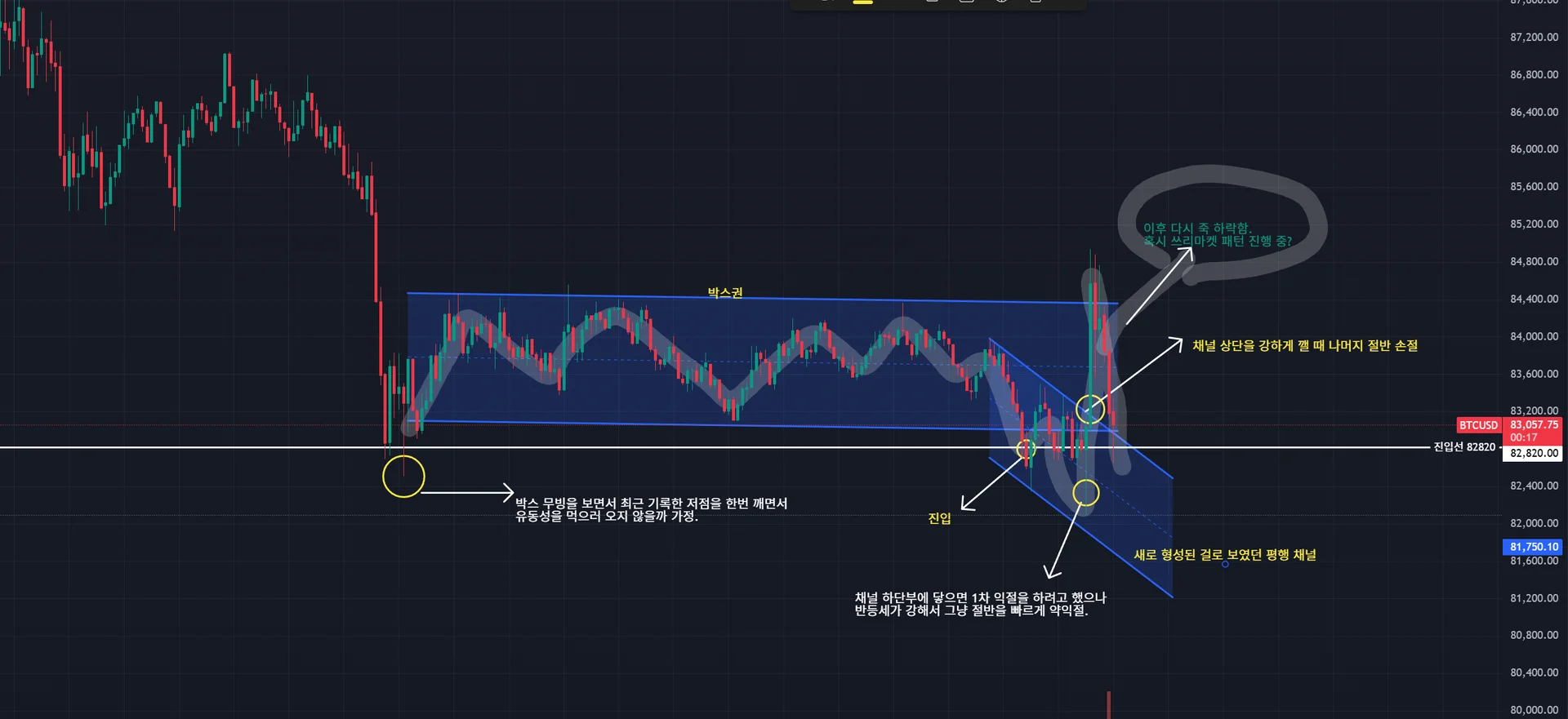 채널 하단부에 닿으면 1차 익절을 하려고 했습니다.