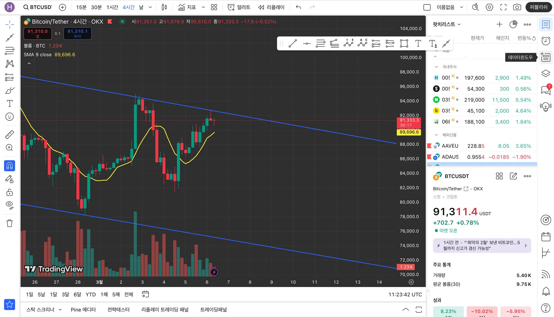 위 그림과 같이 하락추세선을 그려봤고, 지지선과 저항선 어떤게 먼저 뚫리는지 보고 매수 타점을 잡는 전략을 준비하겠습니다.