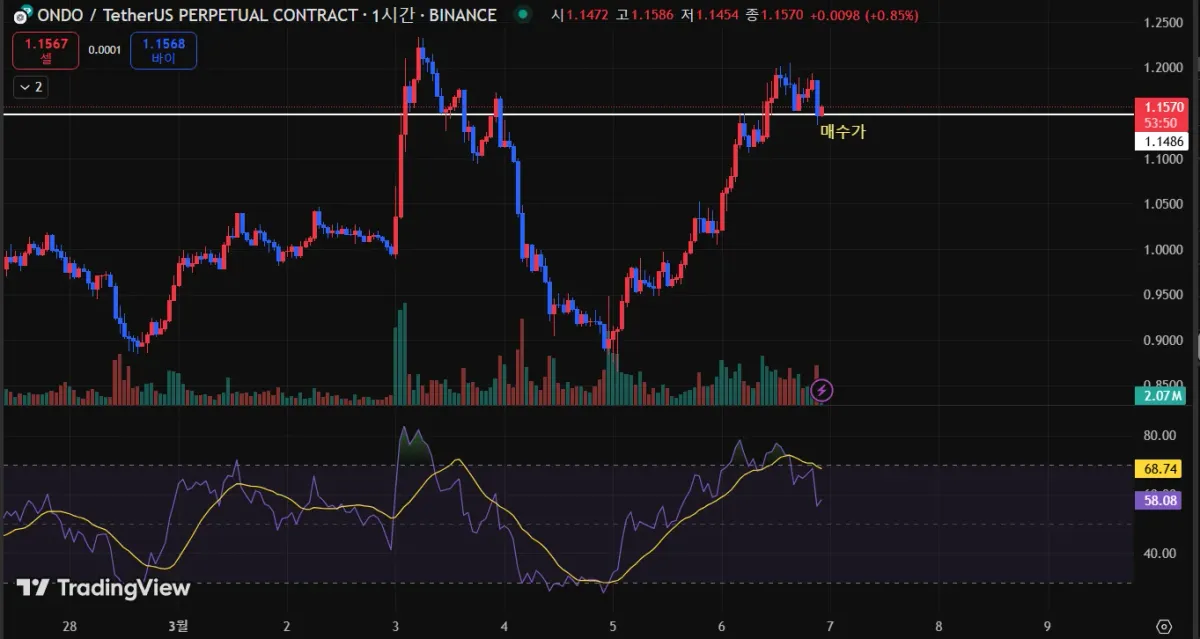 2일차 미션 진행하고, 온도 파이낸스에서 컵 앤 핸들 차트가 보이는 거 같아 한 번 작게나마 진입해보았습니다