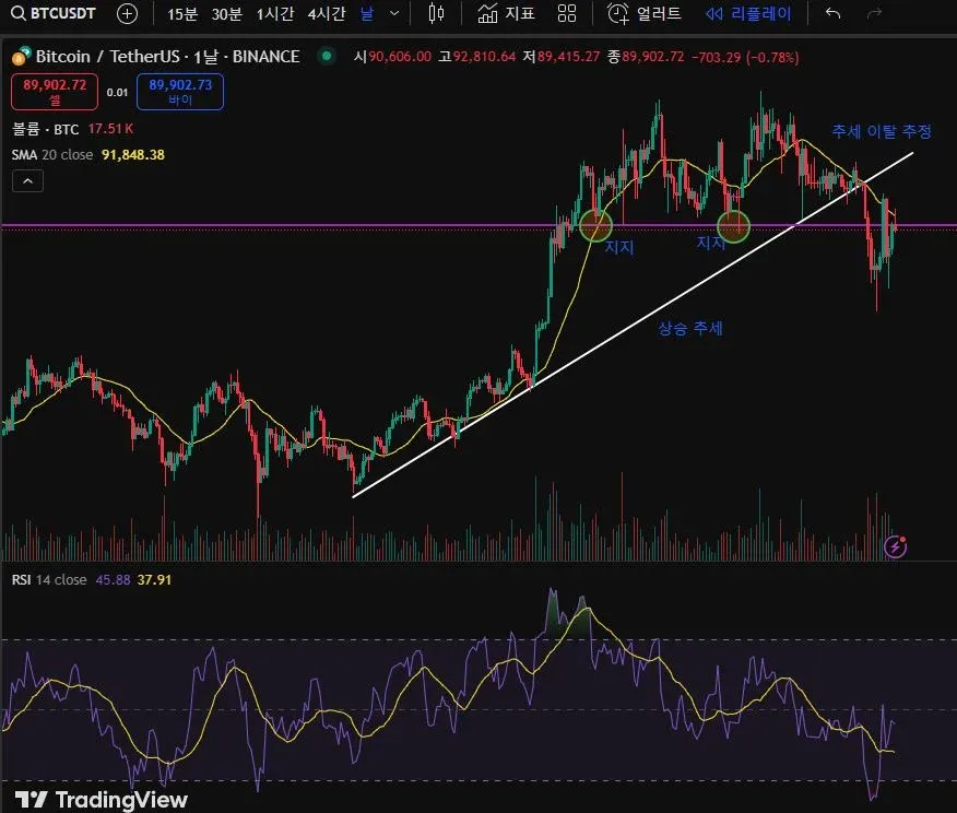 일단 오늘 배운 강의 내용으로만 작도 진행해보았는데 제가 찍은 추세선과 지지선을 맞게 표기가 되었을까요..?