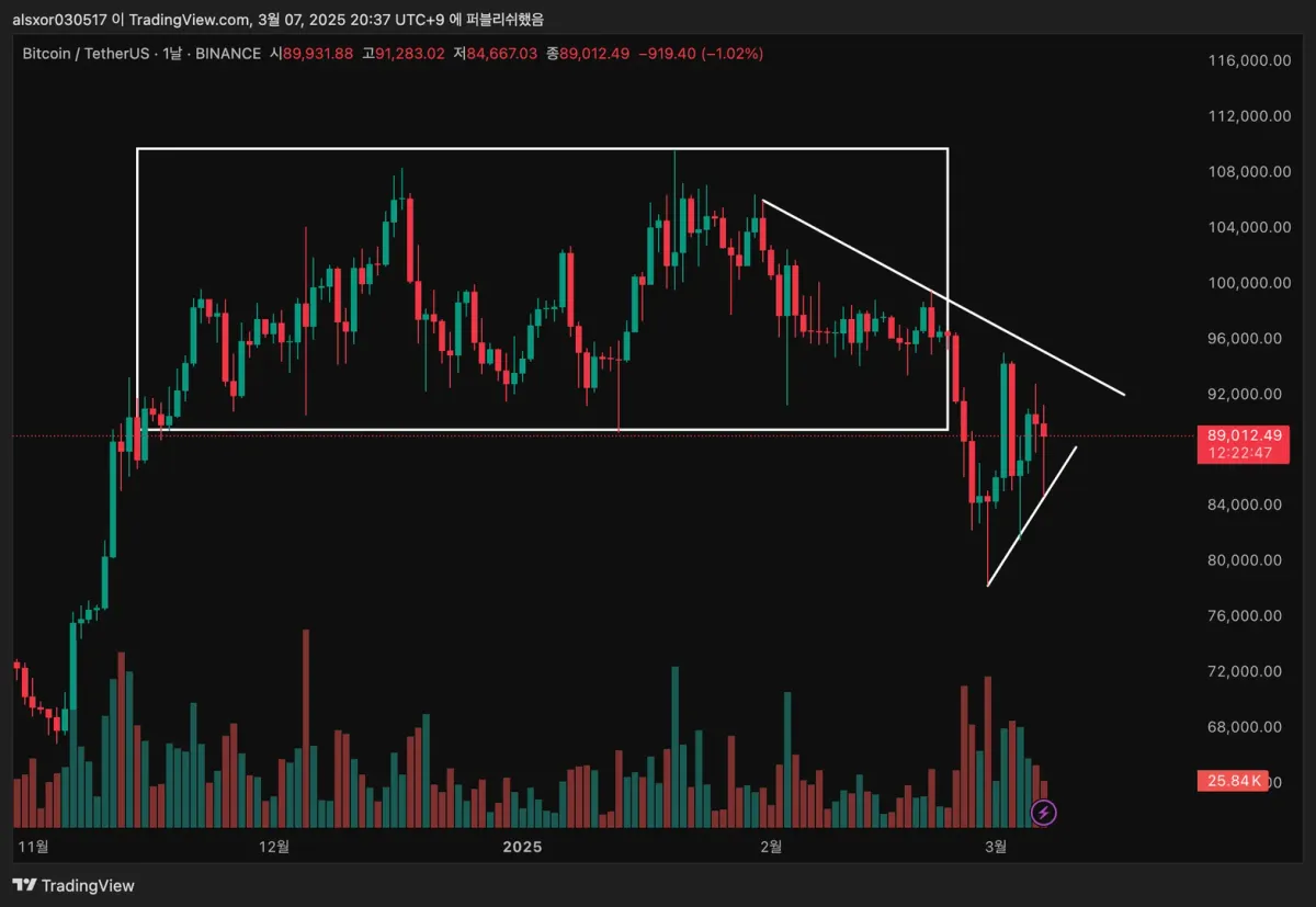 단기적으로 볼 때 몇 달 간 박스권에 갇혀 있다가 하락 추세로 전환했고 캔들의 저점이 높아지는 걸 보아, 반등이 나올 수 있을 것 같습니다.