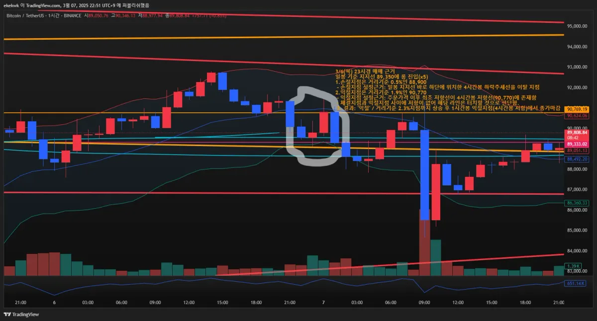 - 89,350에 롱 진입(x5) 하여 90,770에 익절