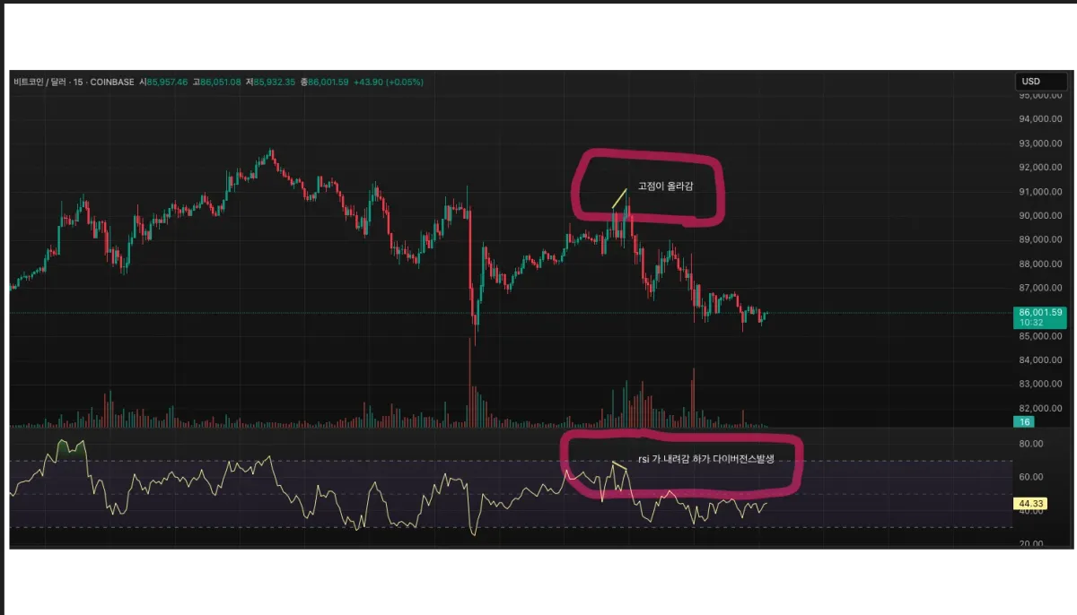 rsi 추가후 하락 다이버전스도 한번 찾아봤습니다 지금보니까 끝에 상승 다이버도 있네요 ㅎㅎ