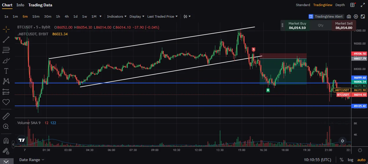 4) 손익비 1:5.34 숏 포지션 진입 후 이전 지지선에서 포지션 종료 및 수익 달성