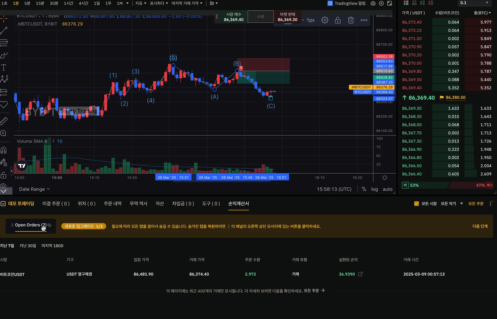 엘리어트 파동 이론을 대입해 숏으로 수익을 냈습니다.