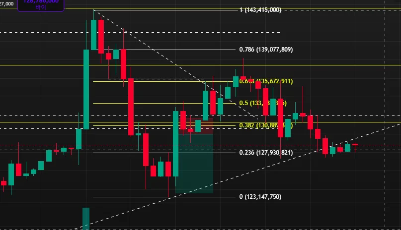 일봉에서 하락세로 판단해서 급격한 하락 후 더 하락이 있을 것으로 판단했으나 아니었음