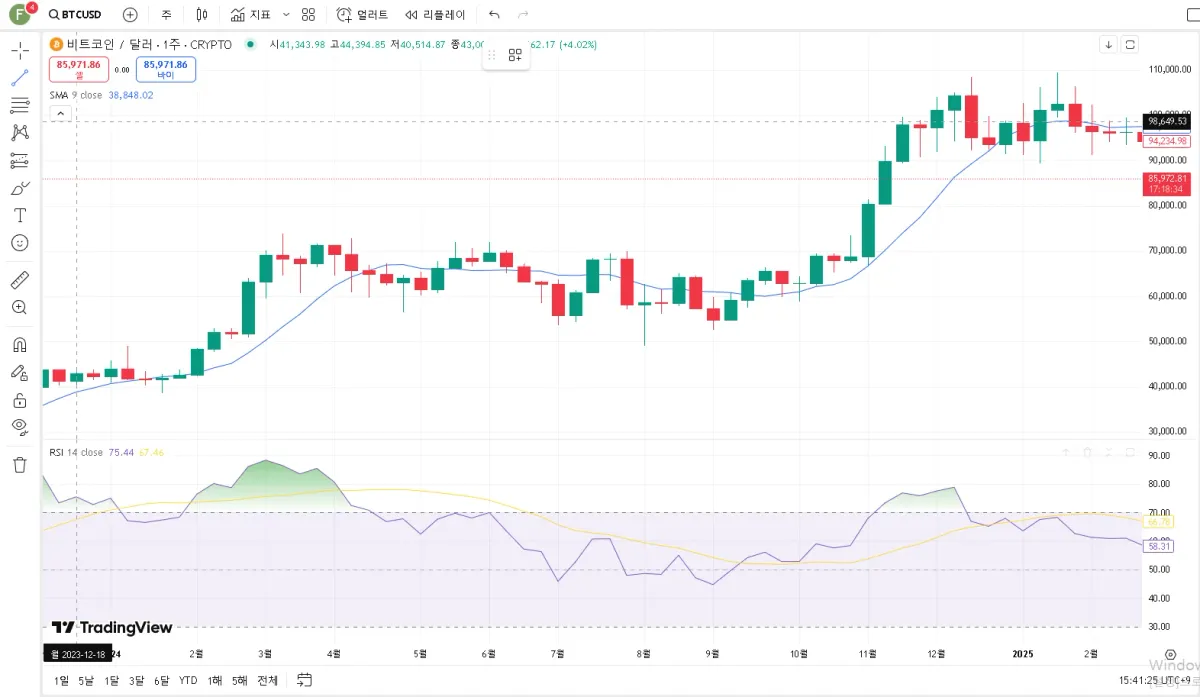 - RSI 70 이상 → 과매수(Overbought): 상승 과열로 조정 가능성 증가
