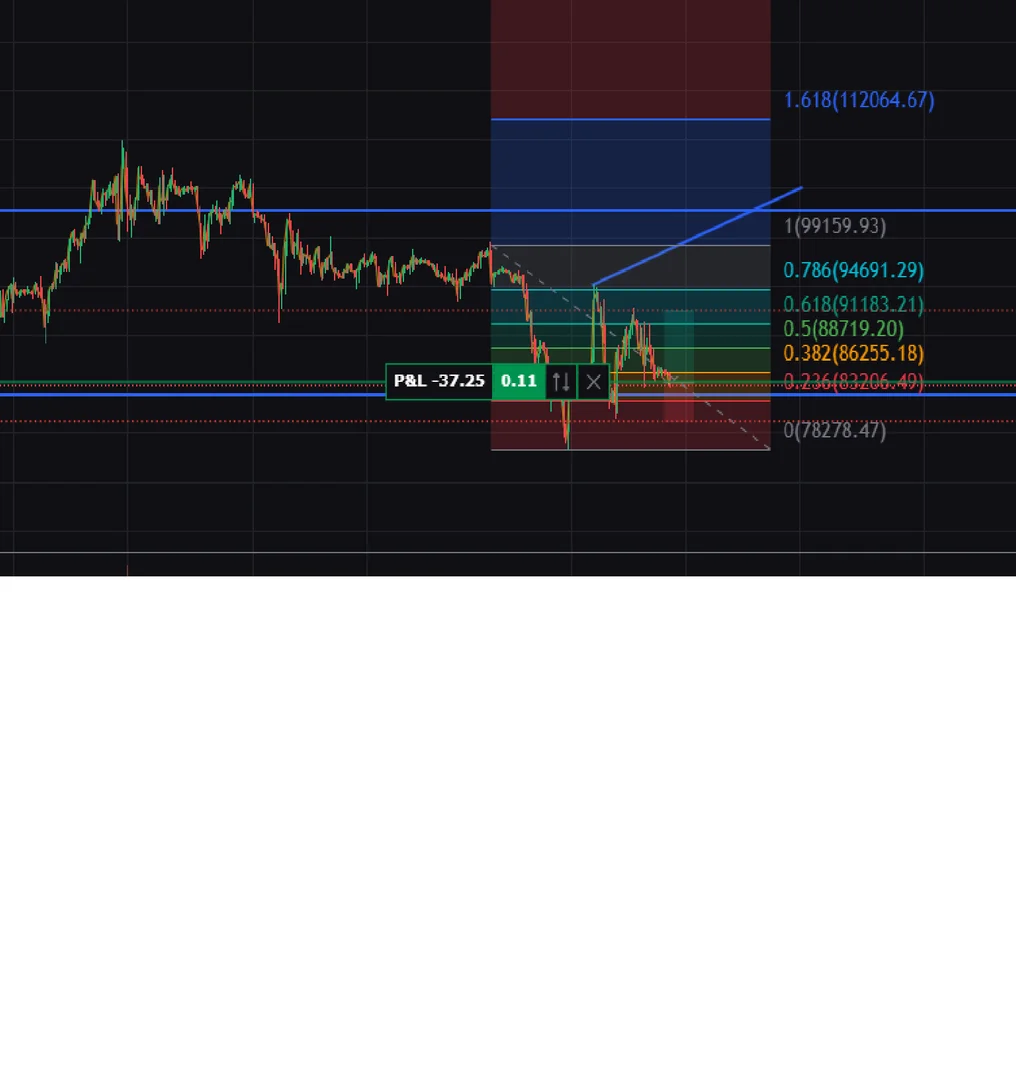 라이징 웻지 모형을 이룸. 저항선에서 거래량이 터진 것으로 보아, 강한 저항선이 될 예정. 긴 하락 이후 반등으로 상승장 예상. RSI에서 상승 다이버전스가 관찰되지는 않으나, 하락 다이버전스가 관찰되지도 않음. 피보나치 되돌림 0.786을 찍고 0.382에서 조정. 0.236 전에 큰