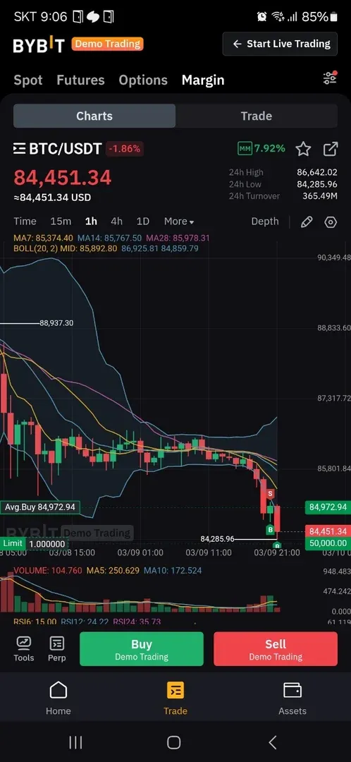 바이비트 가입을 하고 데모 트레이딩에 들어가서 바이, 셀을 눌러보긴 했는데 아직 모르는 것 투성이입니다 ㅠㅠ 이렇게 하는 게 맞는 건지