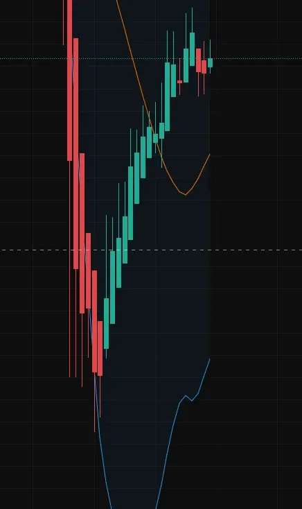 전체적인 흐름 분석은 하락 추세였으나, 1분봉에서 매매를 할 생각으로 1분봉에 볼린져 밴드 및 rsi 지표를 넣고 관찰 하던 중 볼린져밴드 하방 이탈 이후 롱 10x으로 진입하여 욕심 안부리고 1%정도 익절하였습니다.