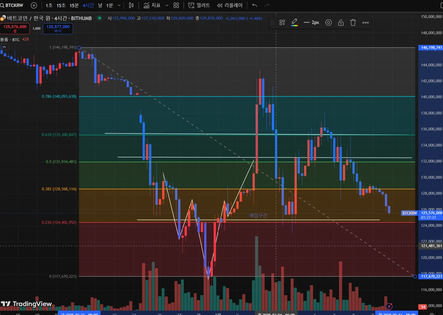 매도를 걸어두지않고 욕심을 부리다 매도 타이밍을 놓치고 계속해서 시장을 관망하다가 뒤늦게 0.5구간 지지선에서 익절하였습니다.