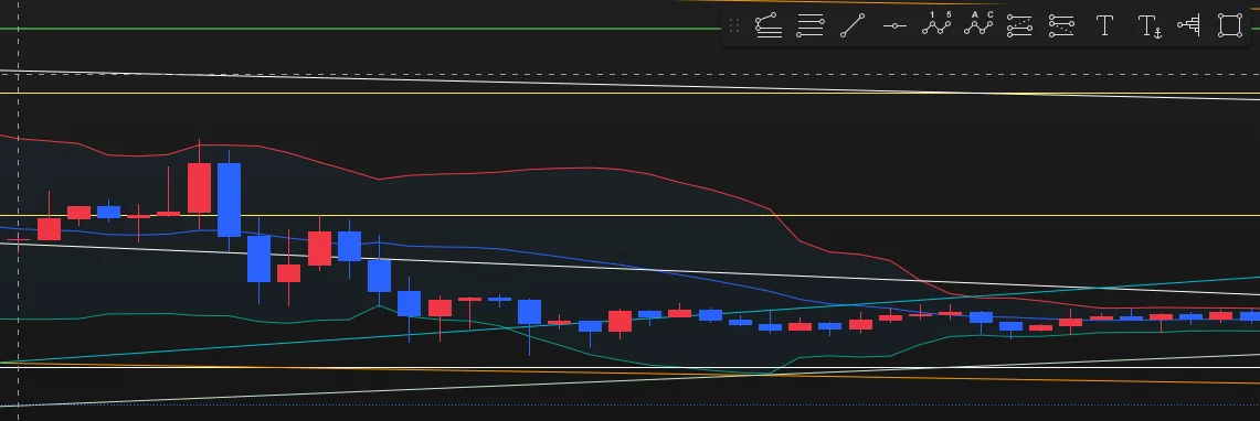 제가 그린 추세와 지지 및 볼린저 벤드 또는 하나의 채널 안에서 지지와 저항을 받을때 들어가서 짧게 먹고 나왔습니다