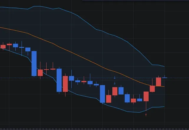 1시간.4시간,일봉 추세를 봤을때 전체적으로 하락추세였습니다. 그 후 일분봉으로 와서 볼린저 밴드를 이용해서 매매를 진행 하였습니다,