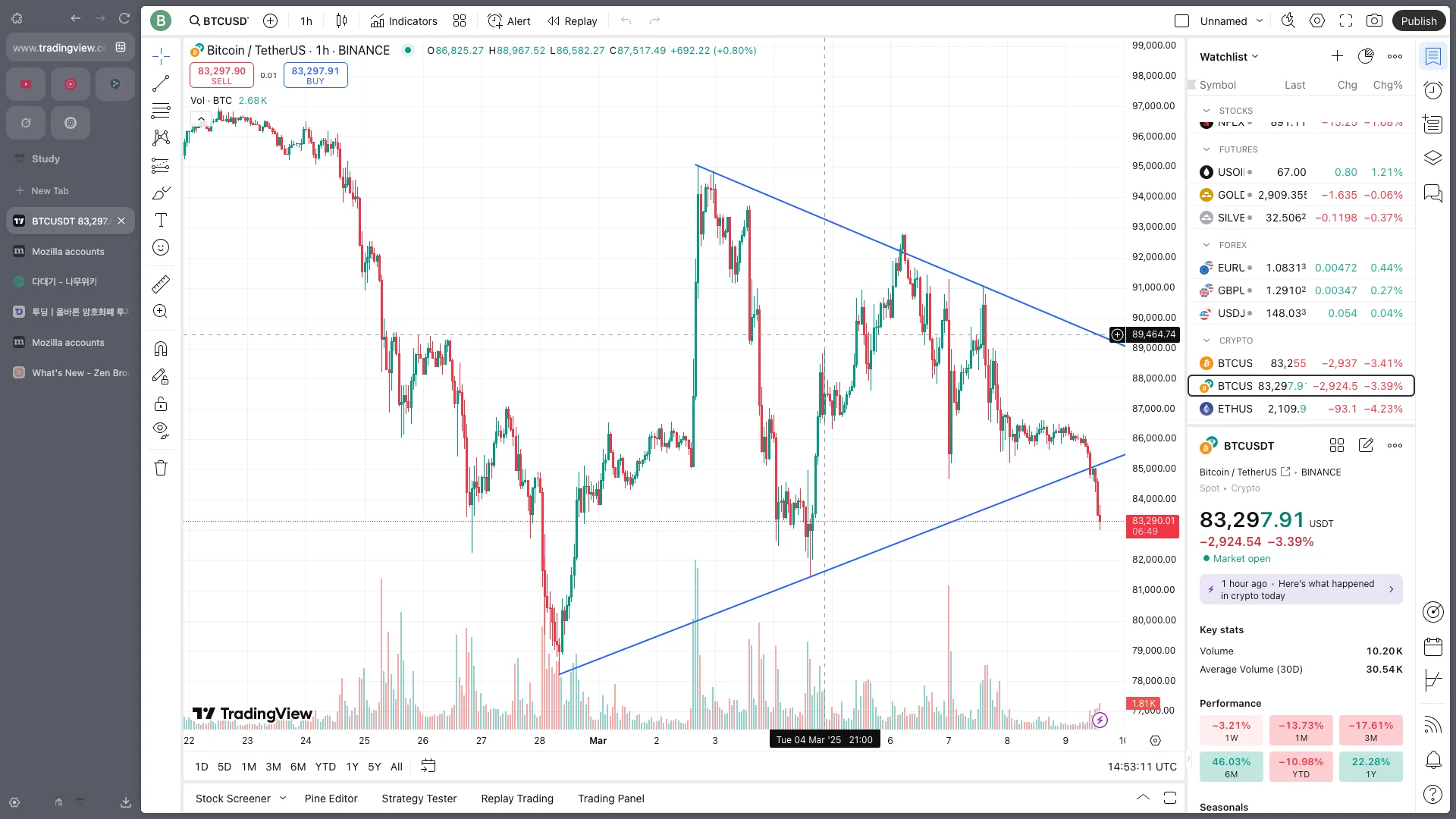 현재 삼각수렴으로 되던 중 추세선 이탈을 보여주고 있습니다.