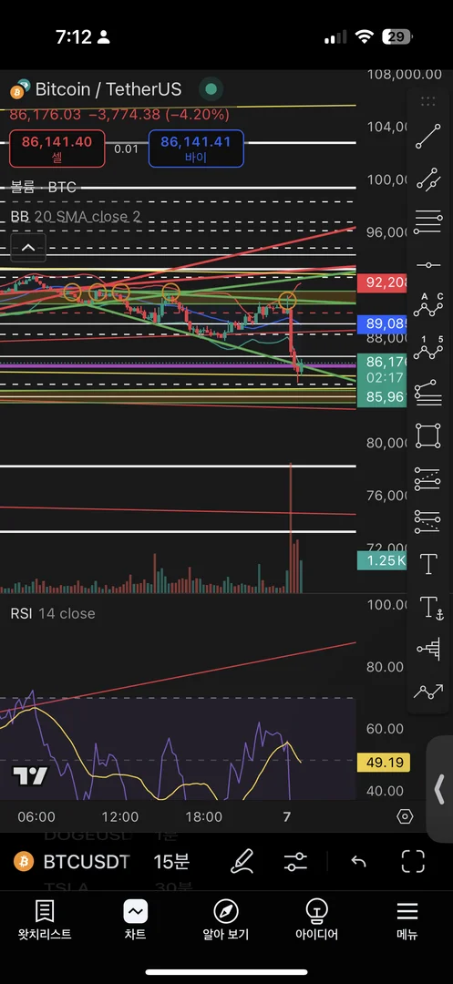 92K 저항선을 뚫지못하고 4번 터치하는 것보고 숏으로 들어가서