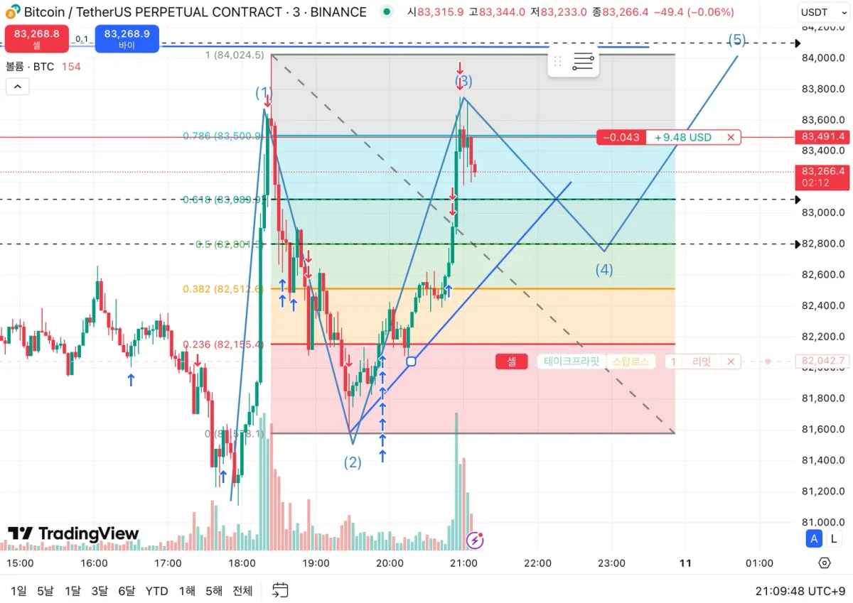 1. 3분봉 피보나치 0.786 부근에서 저항 맞는 모습에 0.786 부근 매수