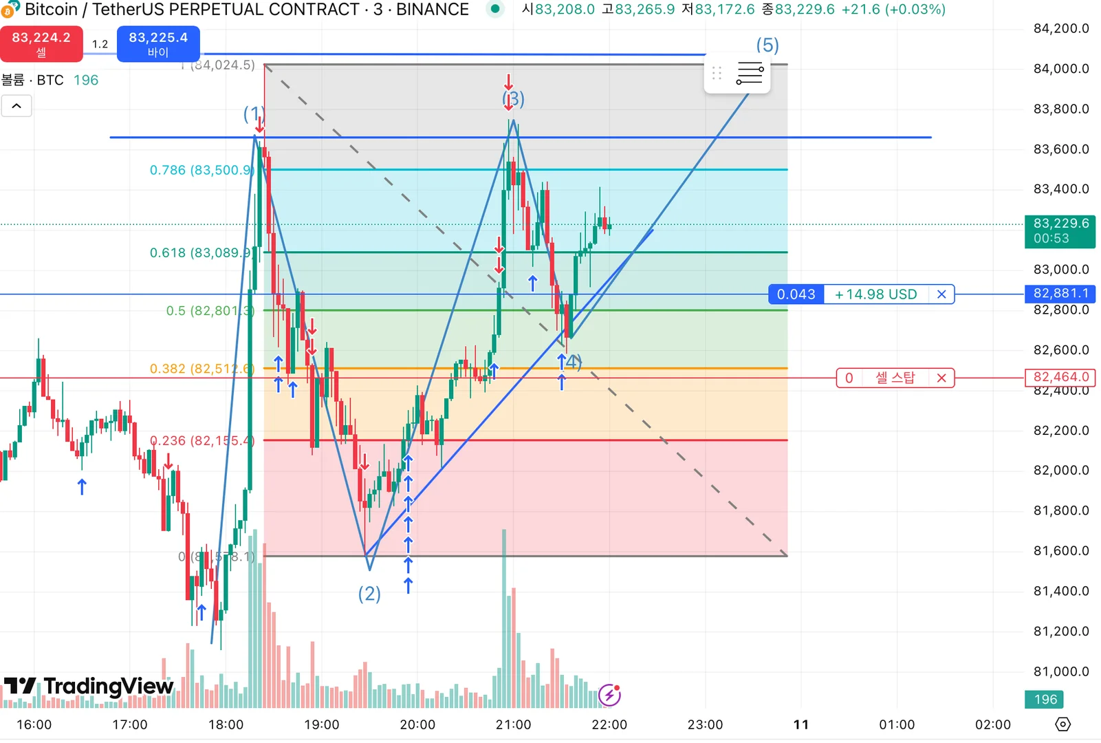 또한 컵앤핸들 도달하지못하고 0.618(83,091)부근 무너지면 매도 타이밍이라 생각하고있습니다.
