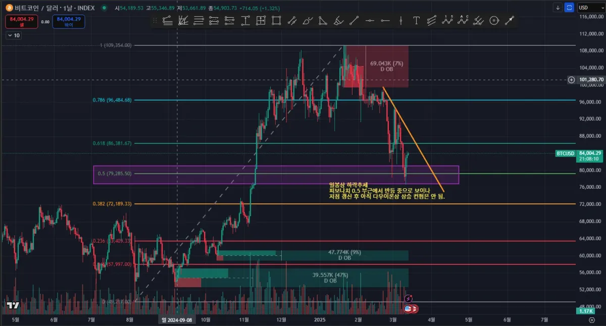 - 일봉 상으로는 반등 중이나 하락 추세로 보임.