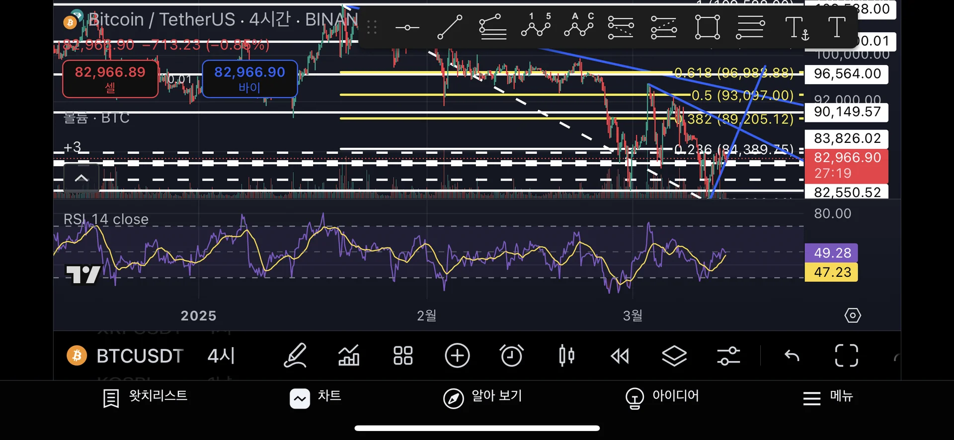 그리고 나름대로 지지저항선, 추세선, 피보나치?도 작도해봤는데 맞는건지 모르겠네요;;