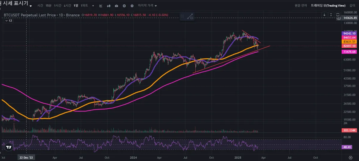 최근 25년1월 17일~ 현재까지의 고점을 연결해 보았습니다.