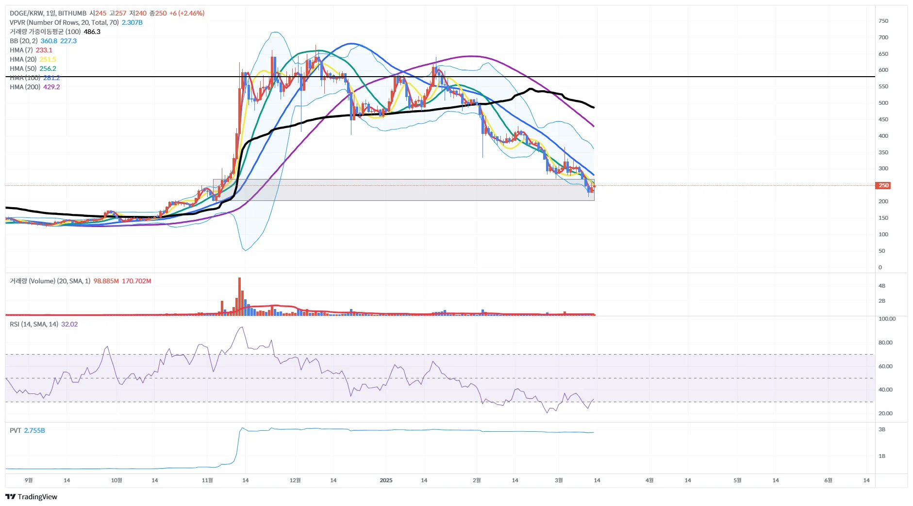 미국 써밋 발표, x랑 도지코인 연동 가능성 찌라시, 주요구간 지지하면 v패턴 으로 반등할 것으로 예측