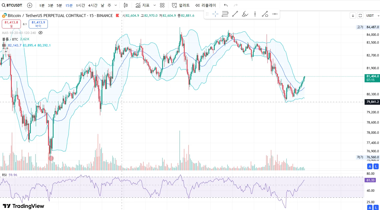 81k 부근에서 과매수가 나오지 않을까 싶어요.