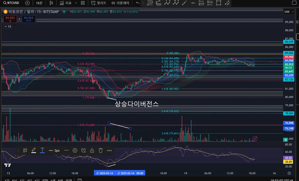 15분봉 상승다이버전스찾기