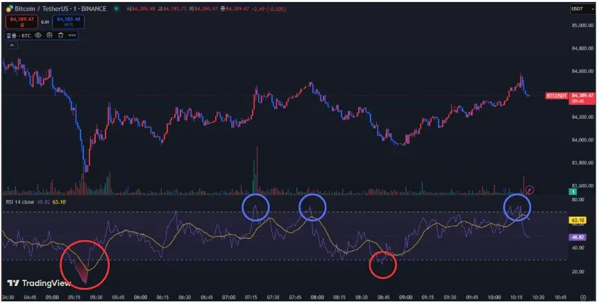 빨간원은 과매도 부분 이후 차트가 상승하는 모습이 보입니다