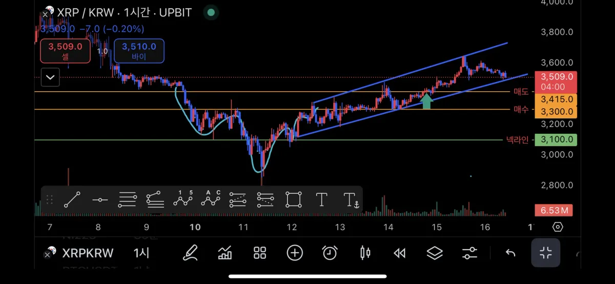 역 헤드앤숄더 패턴을 보고 뒤늦게 들어가서 수익을 보고 있었지만 상승추세에서 고점이 이전의 고점보다 올라가지 못하고 저점이 낮아지는거 같아 매도를 해서 수익을 봤습니다. 아쉬웠던 점은 역헤드앤숄더 패턴을 너무 늦게 찾아 넥라인에사 진입을 못한 것이 아쉽고 매도를 할때에도 조금 더 지켜봐 상승추세에서 하락을 꺽이는지 확실히 판단을 하고 매도를 하던 조금 더 지켜보는게 더 좋았을거라 생각합니다.