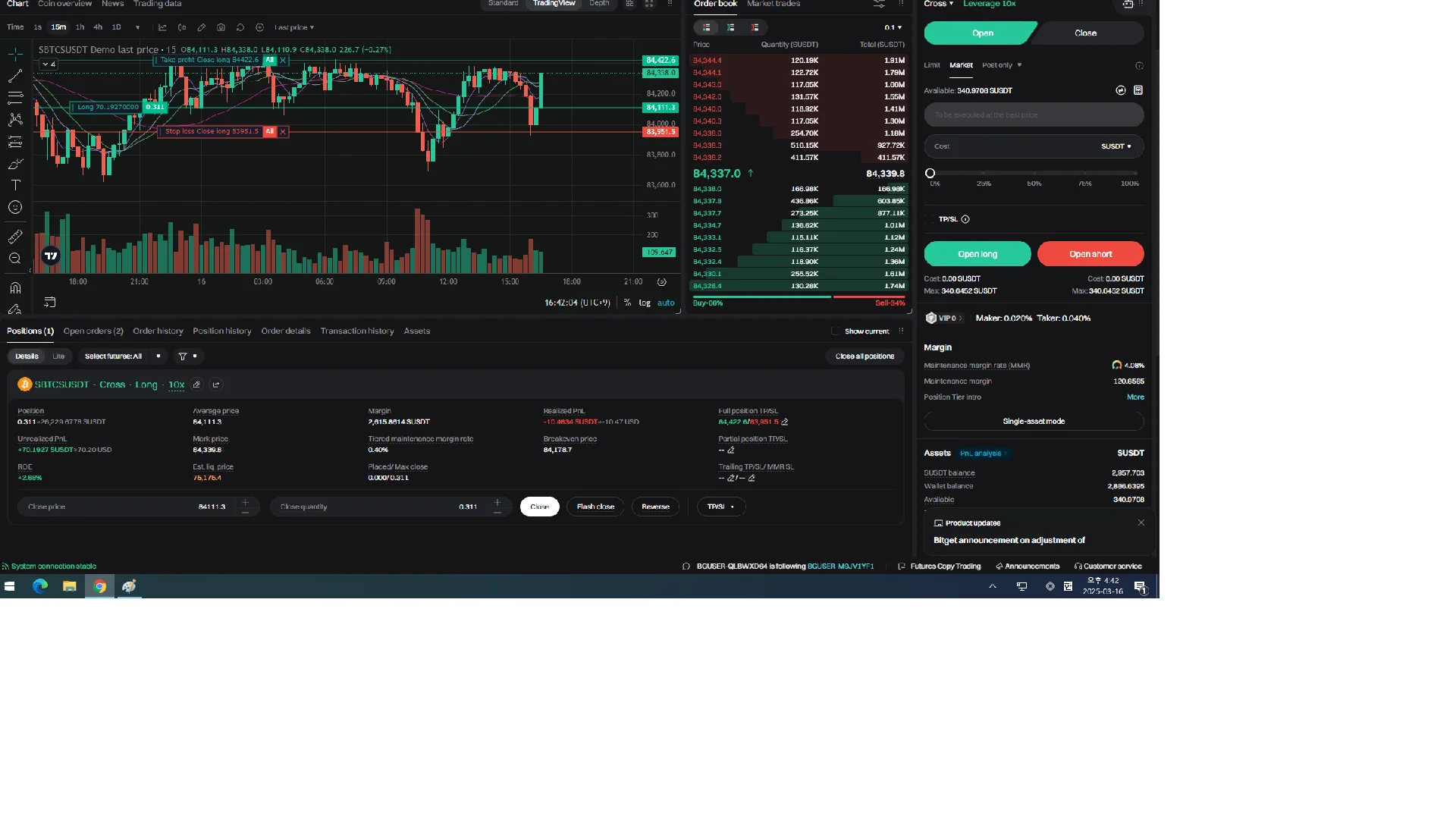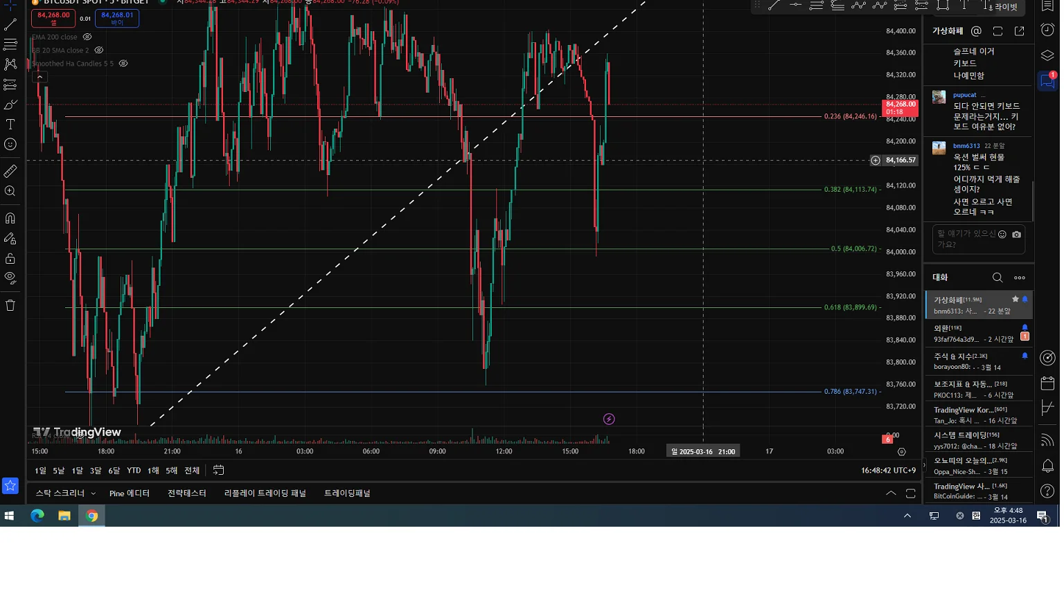 84113쯤 들어가서 수익 3프로 정도에 매도 걸어놨습니다!