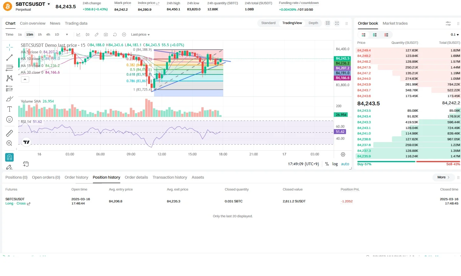 모투는 처음이라 15분봉 기준 라이징웻지 패턴 같아 보이길래 숏 진입해야 할걸 롱 진입해서 빠르게 청산하고 약 손실 마무리 하였습니다.