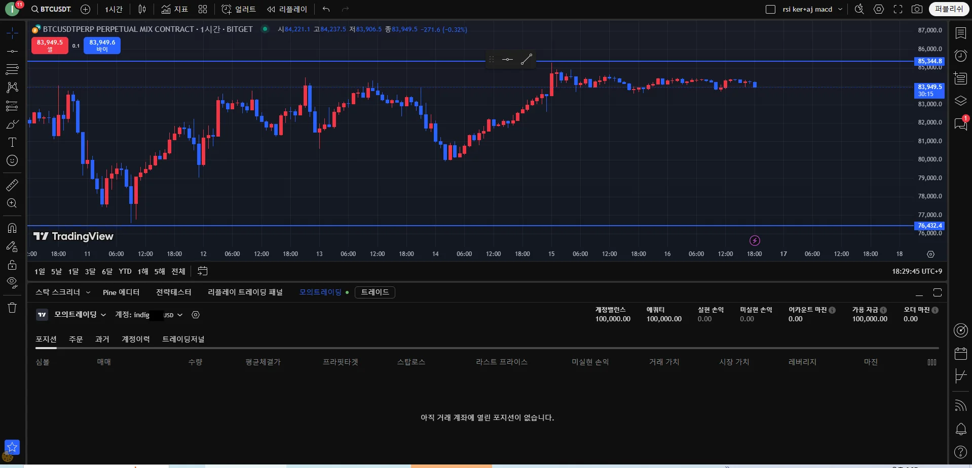트레이딩뷰 모의투자(비트겟 BTCUSDT)로 진행하고자 하였으나