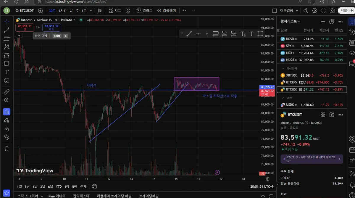 그 이후에 박스권 진입해서, 기존 저항선이 지지선으로 활용되고 있는 리테스트 같습니다 .