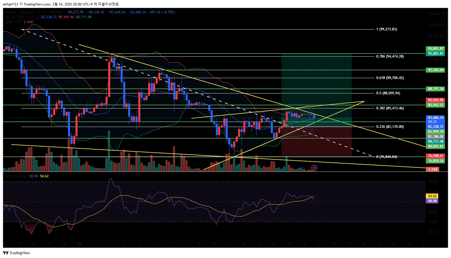 4시간 봉 라이징웻지 패턴으로 보여 피보나치되돌림 0.236부근에서 숏 진입하려고 합니다.
