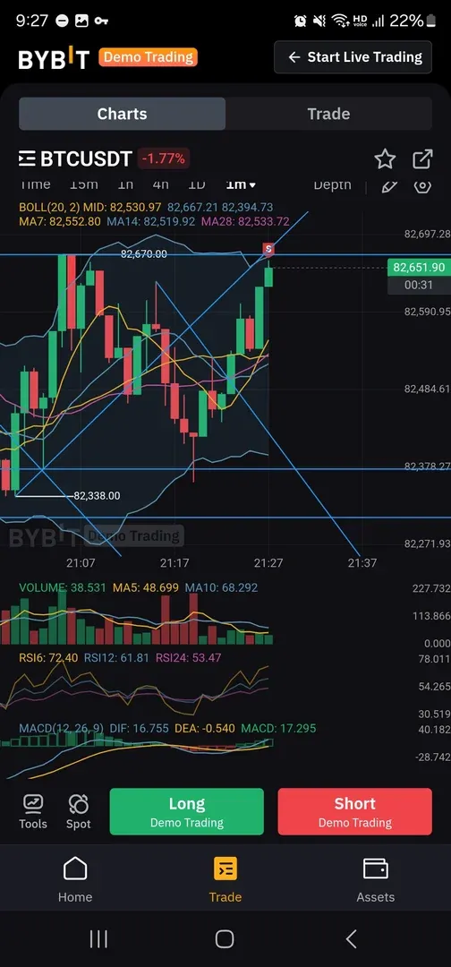 하방 지지선에서 롱 진입하려고 했으나 끝까지 내려오지 않아 놓치고 하락 추세선 브레이크 후 롱 진입하여 첫 저항선 이전에 익절하였습니다. 소량의 수익이지만 다양한 기술적 분석을 연습하고 부분 익절 등 지속적으로 전략을 발전시켜 나가겠습니다. 감사합니다.