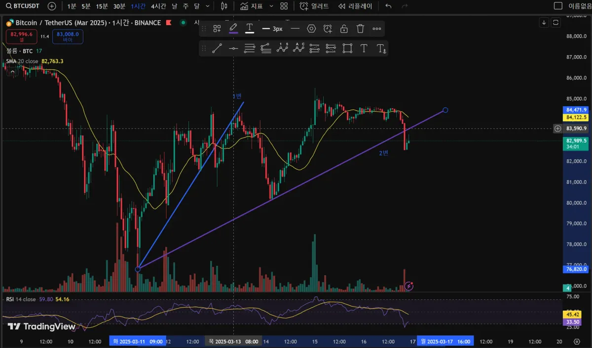 [30일 챌린지 19기 1주차] 비트코인 1시간 봉 추세선 작도