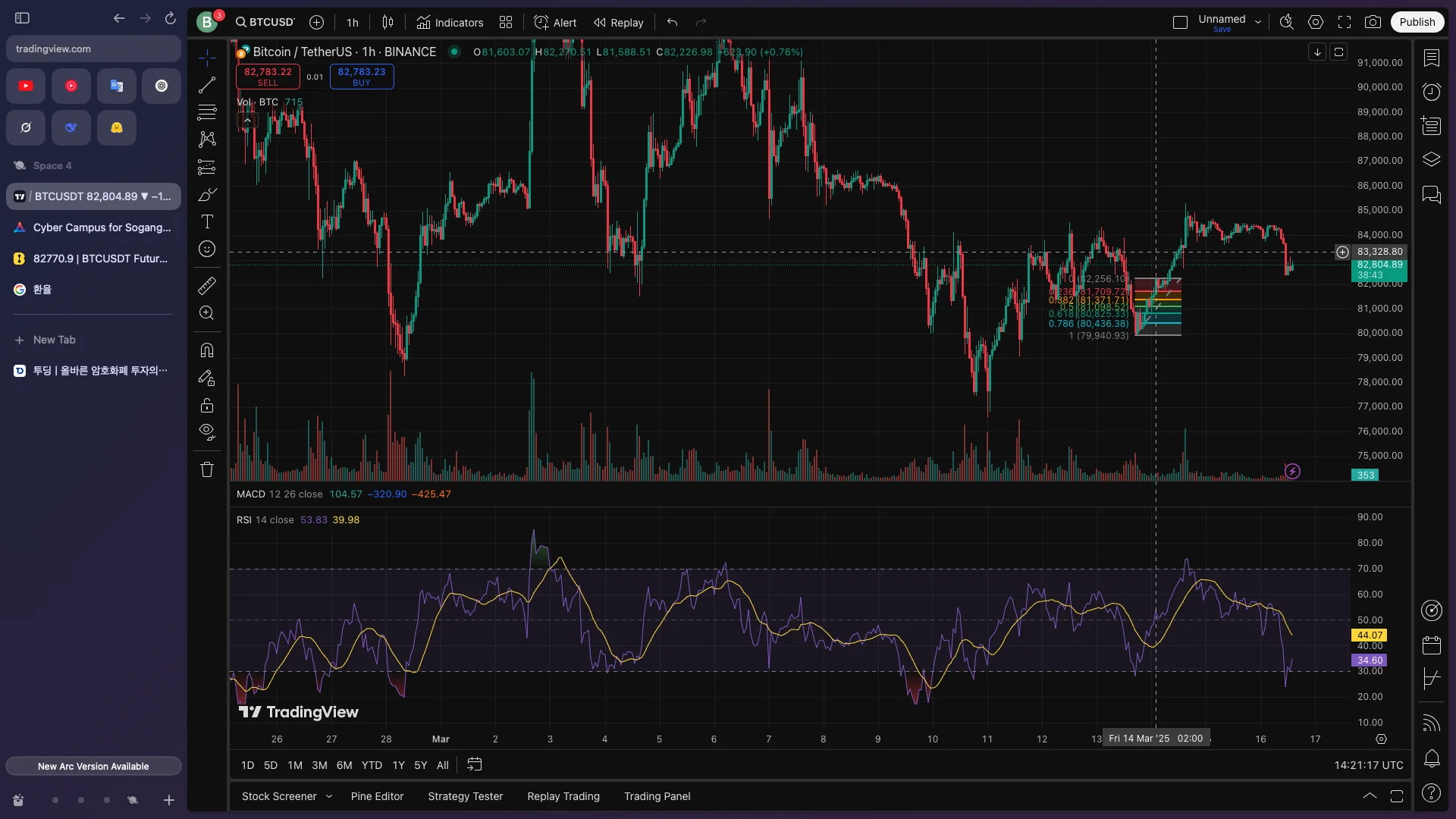 현재 RSI 가 30 선이하로 내려온 상태입니다. 과매수로 파악되며, 유지될시 롱 포지션을 잡아볼 수 있습니다.