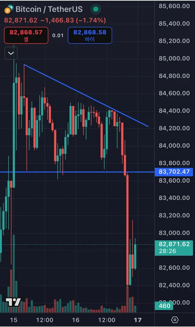 하락추세에서 지지선이 뚫려 큰 하락이 나온 것 같습니다.